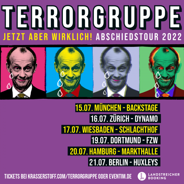 Tickets für die Konzerteim Sommer findet ihr im Terrorgruppe Shop, eventim.de und an allen bekannten VVK-Stellen.